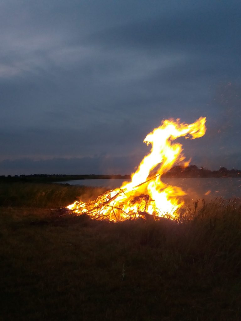 De sidste par uger inden sommerferien har været hektiske, smertefulde, ungerne har været umulige og jeg har følt mig helt vildt presset, så det var en lettelse at sætte sig på færgen og få den følelse af at forsvinde ind i Ærø-boblen. Vi ankom på Skt. Hans aften og min far og stedmor sørgede for hjemmelavede frikadeller (der er bare noget helt vildt hyggeligt og hjemligt over friskstegte frikadeller). Lidt senere kom min storebror og hans familie også til øen. Sammen gik vi ned og så bål.